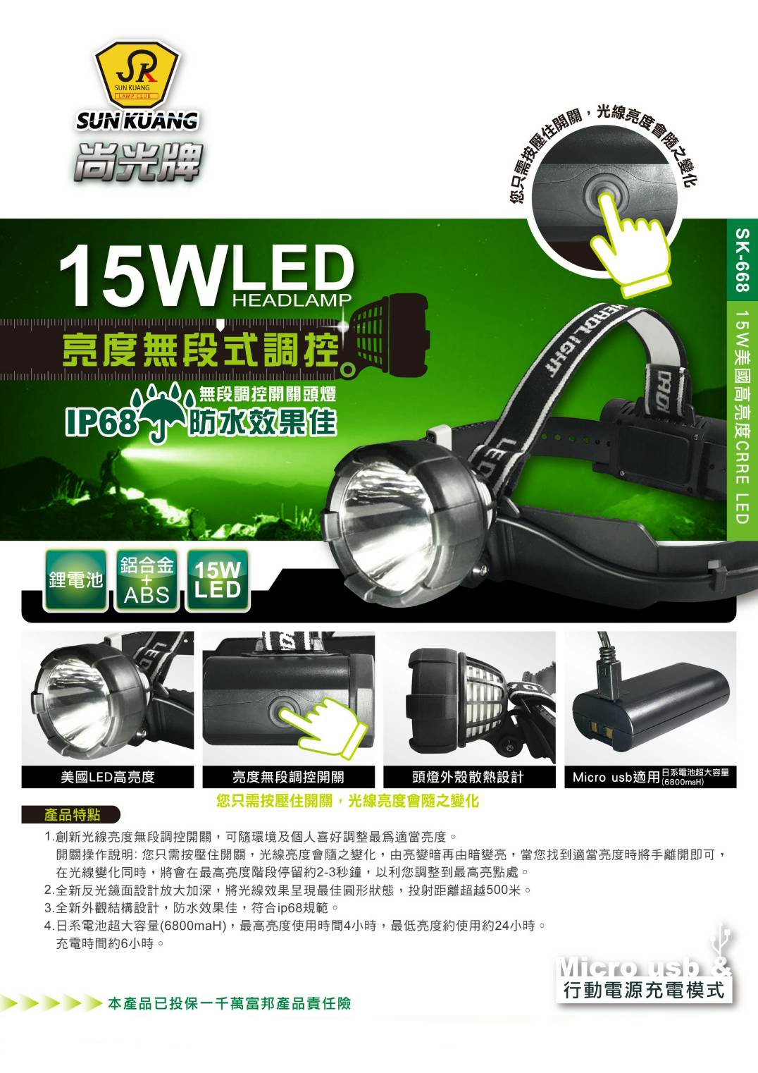 SK-668 亮度無段式調控頭燈-尚光接受進行原廠委託代工製造OEM