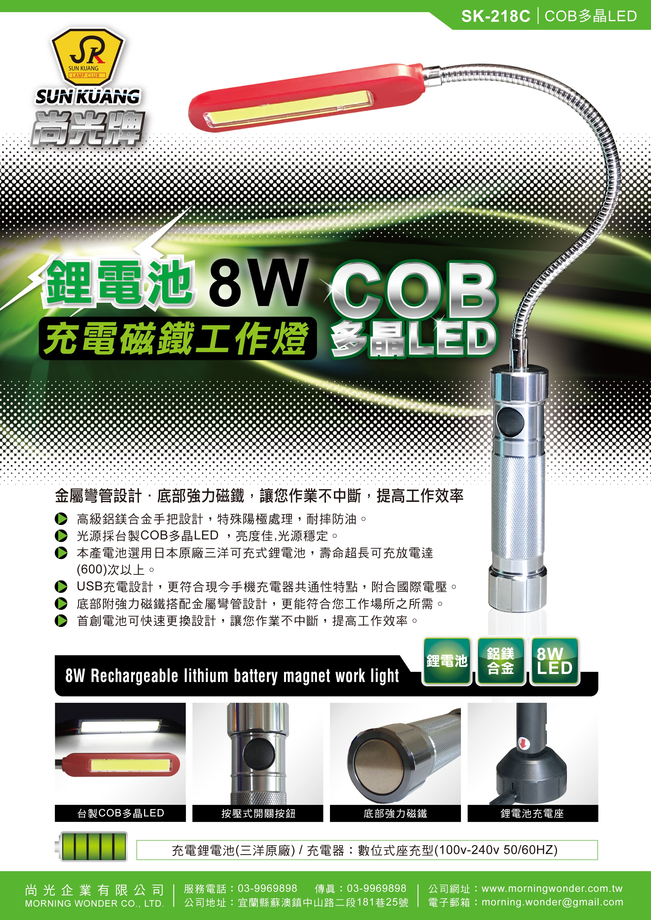 多樣設計:晨華國際有限公司提供充電磁鐵工作燈的多樣化設計,如有需要請與我們聯絡,立即連絡