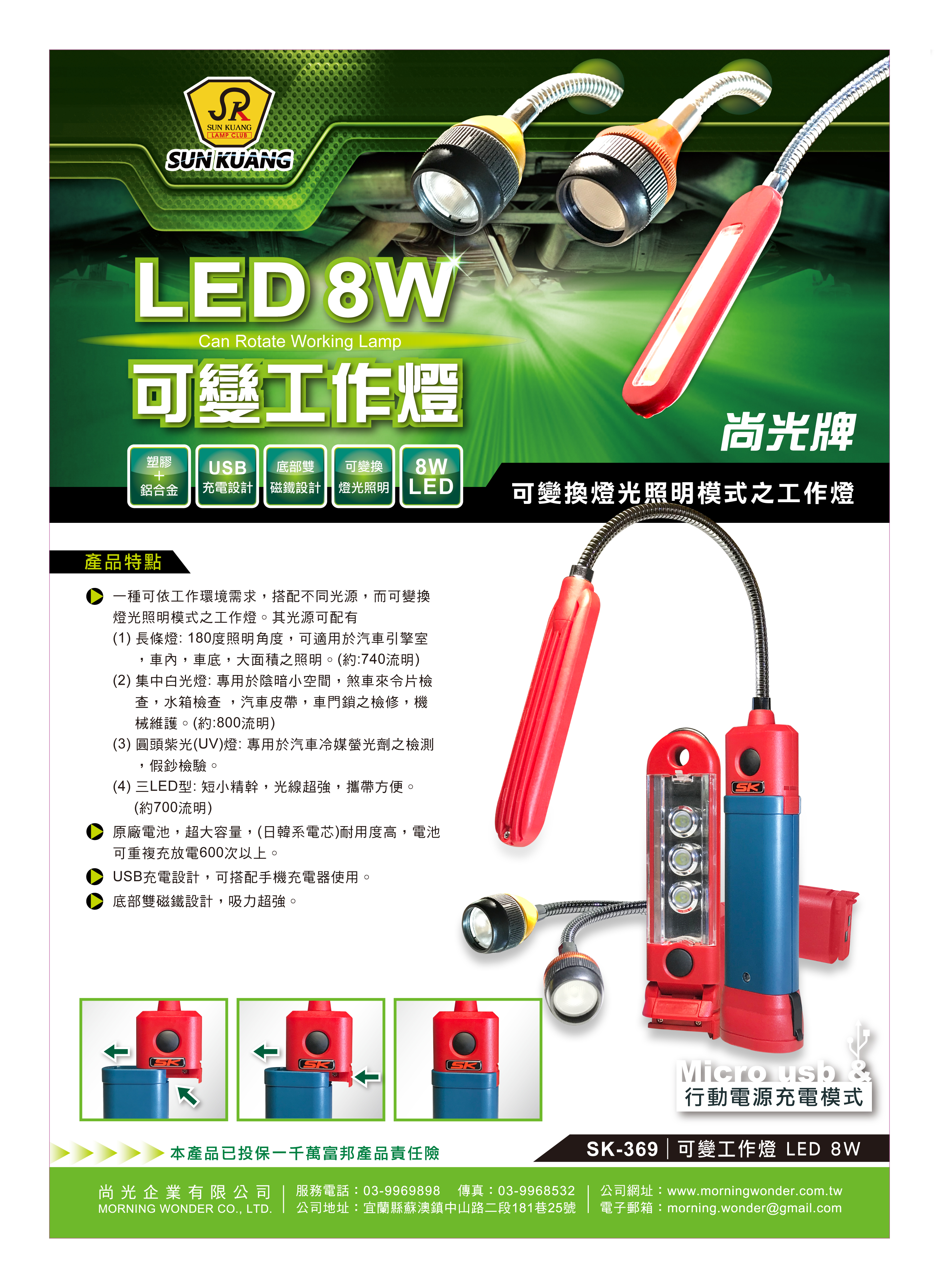 多樣設計:尚光企業有限公司提供尚光 SK369 可變工作燈的多樣化設計